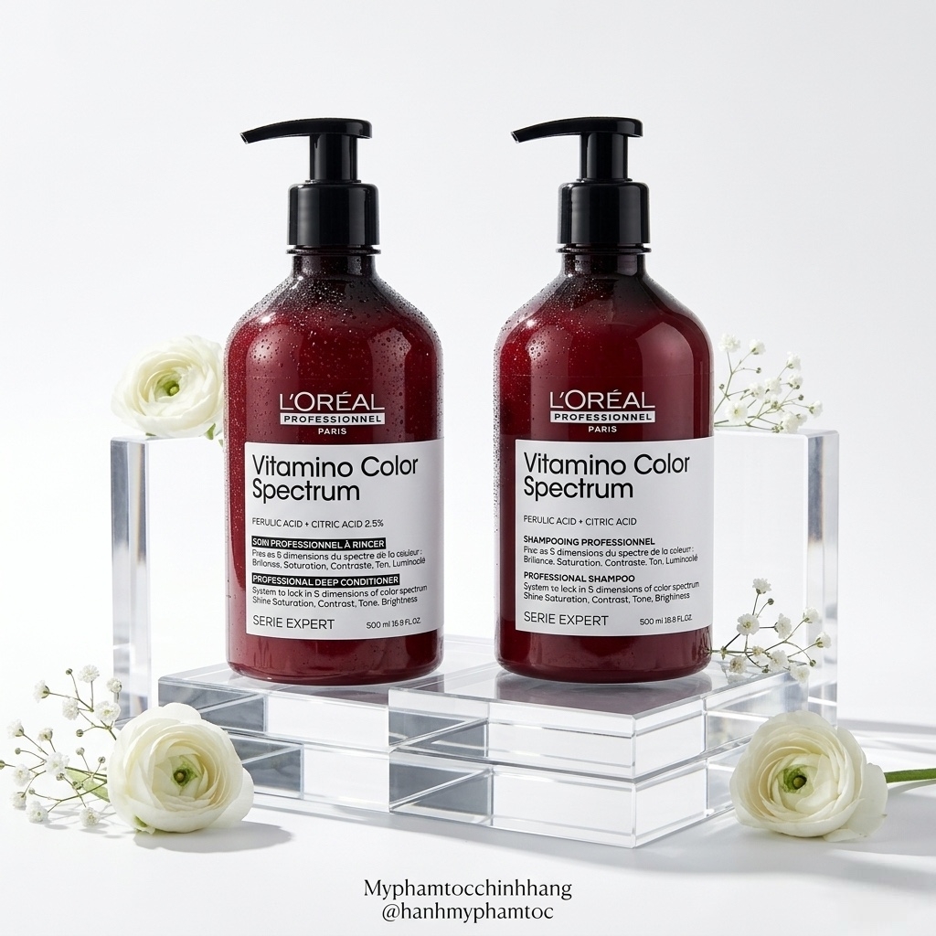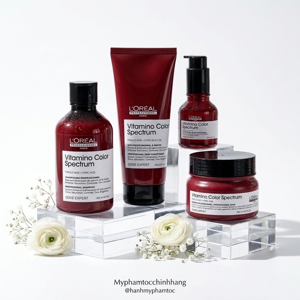 L’Oréal Professionnel Vitamino Color Spectrum là dòng sản phẩm chăm sóc tóc chuyên nghiệp, được thiết kế đặc biệt để bảo vệ và duy trì độ sáng bóng của tóc nhuộm. Với công nghệ tiên tiến kết hợp Axit Ferulic và Axit Citric, hệ thống này giúp khóa chặt các phân tử màu bên trong sợi tóc, giữ cho màu sắc ngày đầu tiên của bạn bền lâu lên đến 100 ngày.
