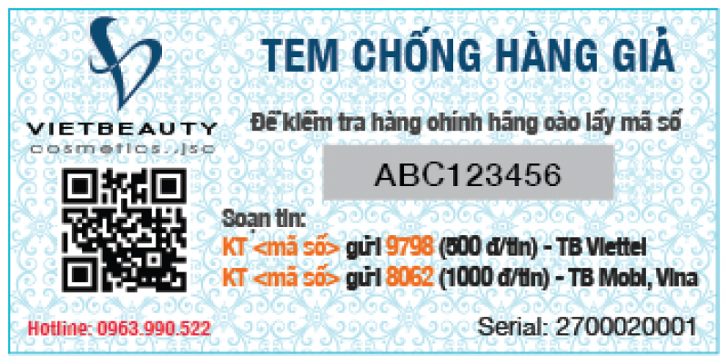 + Mỗi sản phẩm của Vẻ Đẹp Việt chỉ có duy nhất 1 tem cào cho 1 sản phẩm.